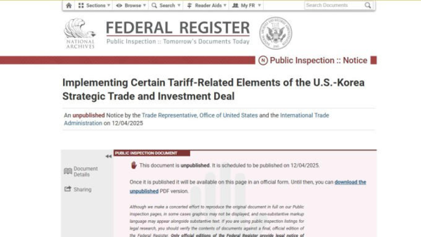 2025년 12월3일자 미국 온라인 연방 관보 캡쳐.