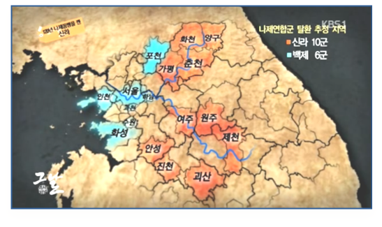 본래 이 지역은 백제의 영역이었고, 양국은 승전 이후 백제가 한강 하류 지역 6군(포천, 서울, 하남, 과천, 화성, 인천)을, 신라가 상류지역 10군(화천, 양구, 춘천, 가평, 여주, 원주, 제천, 안성, 진천, 괴산)을 차지했다.