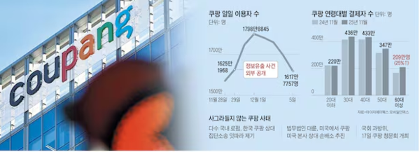 3370만명의 회원 개인정보 유출 사태 이후 쿠팡의 이용자 수가 감소세로 돌아섰다. 반면 지마켓·11번가·네이버플러스 스토어 등 다른 국내 온라인 쇼핑몰 사용자는 일제히 증가한 것으로 나타났다.