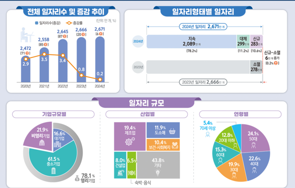 '24년 전체 일자리 2,671만개, 전년 대비 6만개 증가