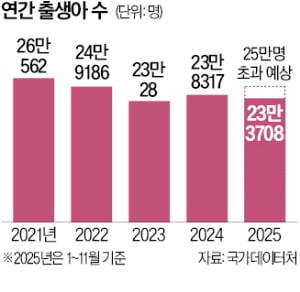 지난해 1∼11월 출생아가 23만명을 넘었으며 18년 만에 가장 높은 증가율을 보였다. 연간 출생아 수는 2021년 이후 4년 만에 25만 명 선을 회복할 것으로 전망된다.