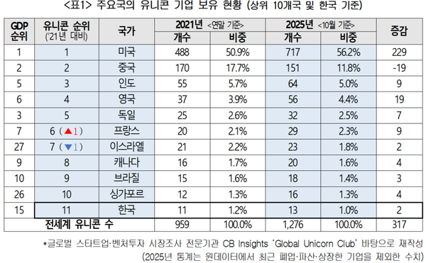 한국 유니콘 기업, 코로나 이후 2개 증가 그쳐... 성장 속도 평균 8.99년 소요 최하위권
