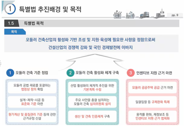 끝으로 모듈러 건축물의 품질 확보를 위한 인증체계 구축을 명시했다.