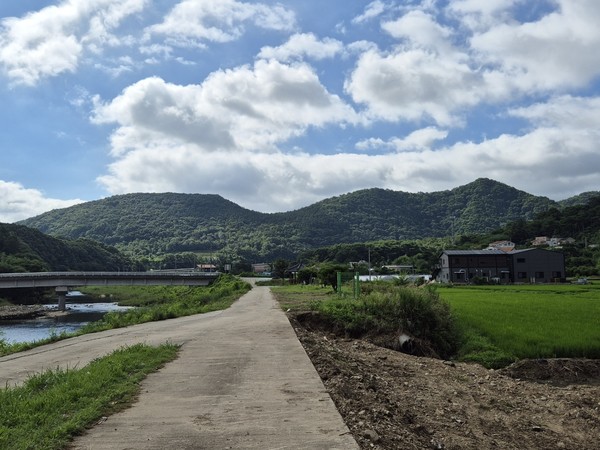 멀리 보이는 세 봉우리가 관산 일대이고 이곳에 설치된 것이 관산성이다.