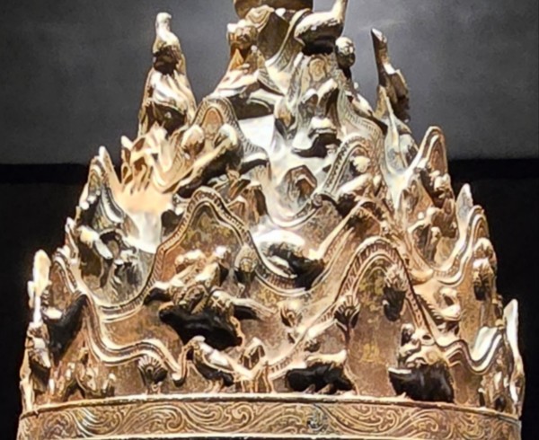 뚜껑은 부드러운 능선이 겹겹이 쌓인 산 모양이다. 42마리의 동물, 5인의 악사, 12명의 인물이 74개의 봉우리 사이에 있다. 봉우리 사이로 계곡이 있고, 폭포가 있고, 시내가 흐른다. 그 주변으로 사람들이 보인다.