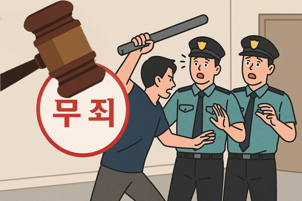 112 신고를 받고 출동한 경찰관에게 쇠파이프를 휘두른 남성이 공무집행방해 혐의에서 무죄를 선고받았다. 경찰의 주거 침입이 ‘적법한 직무집행’으로 보기 어렵다는 이유에서다.