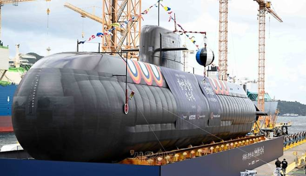 지난해 10월 한화오션 거제 사업장에서 장보고?Ⅲ Batch?Ⅱ 1번함 장영실함 진수식이 열리고 있다.