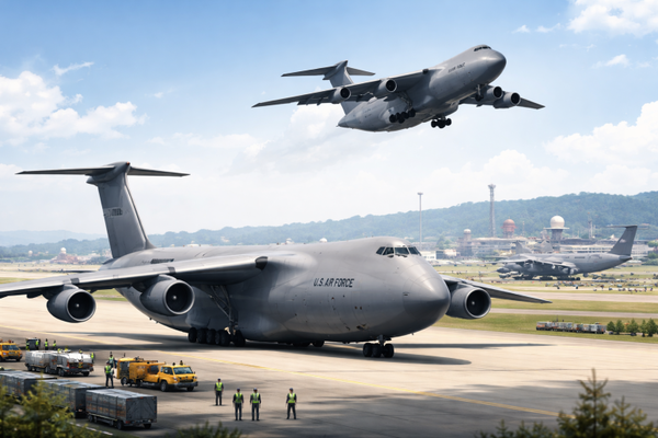 C-5 갤럭시가 오산기지에 모습을 드러냈다는 사실이 큰 관심을 끌었다.